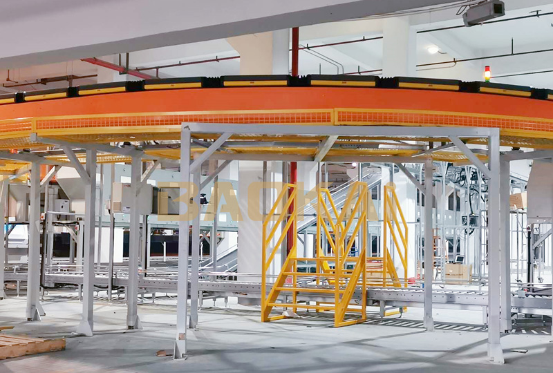鞋服類大型項(xiàng)目,集成螺旋機(jī),通道機(jī),交叉帶分揀機(jī),提升機(jī)等智能設(shè)備和寶開(kāi)BICS信息管理系統(tǒng),通道機(jī)效率達(dá)420箱/小時(shí),分揀效率達(dá)8000-10000件/小時(shí)。
